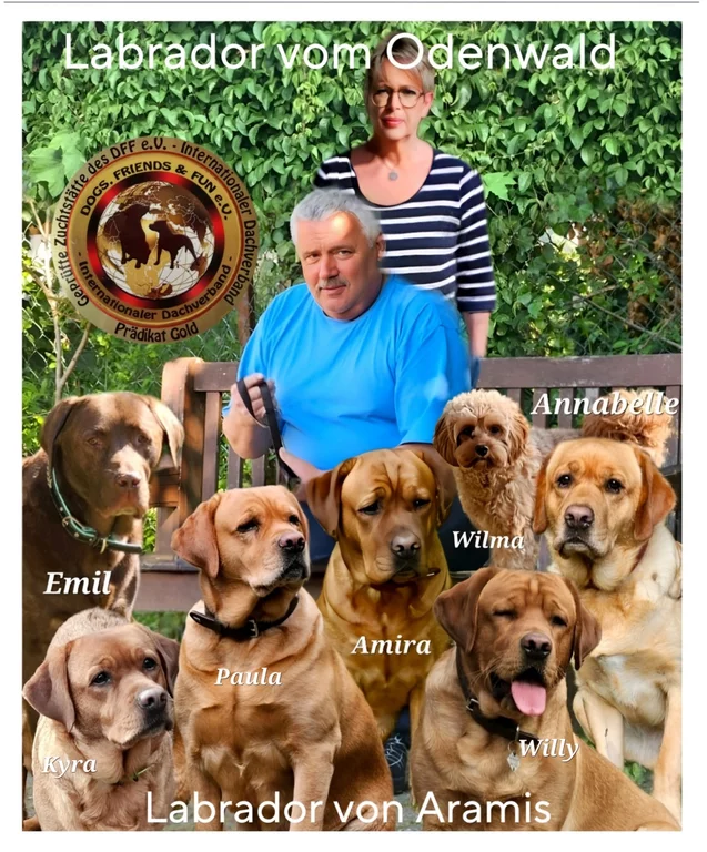 Dies bedeutet, dass Welpen von uns zwar im Zwinger " Labrador vom Odenwald " geboren werden, jedoch in ihrem Stammbuch/Ahnenpass den Namen " Labrador von Aramis " tragen. 💞